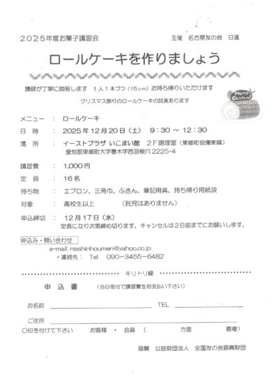 定員になり次第締め切ります。キャンセルは2日前までにお願いします。
