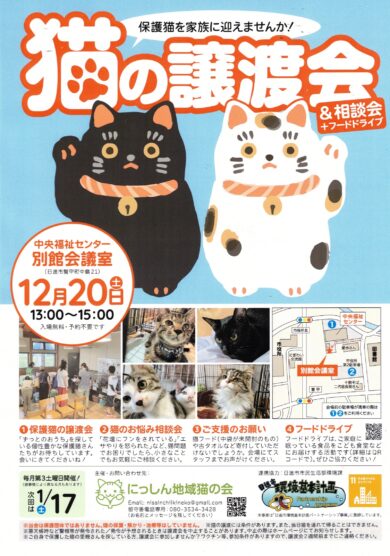 ご自身で保護した猫の里親さんを探 している方、譲渡会に参加しませんか?