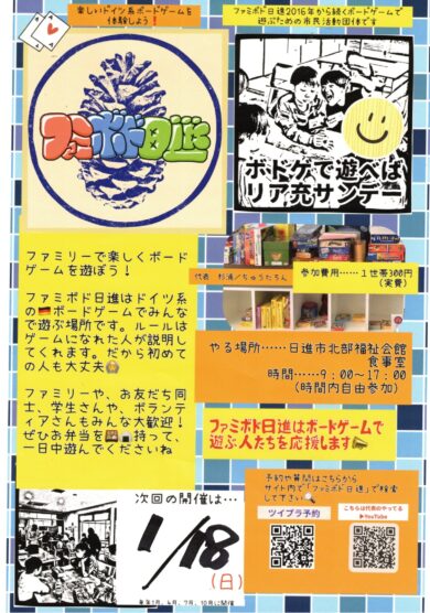 ファミボド日進2016年から続くボードゲームで遊ぶための市民活動団体です