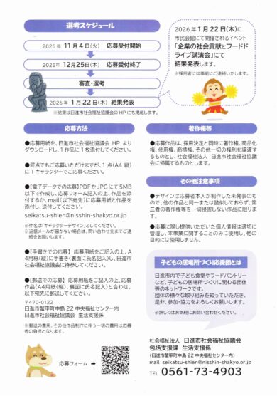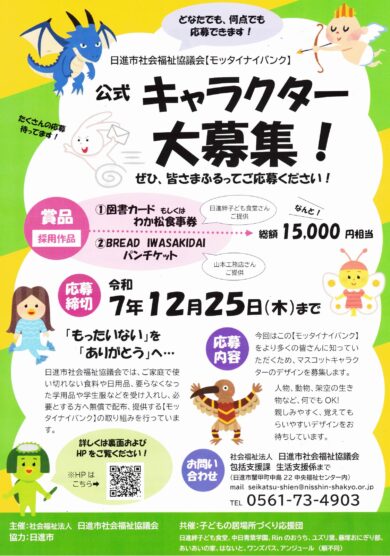 をより多くの皆さんに知っていただくため、マスコットキャラクターのデザインを募集します。