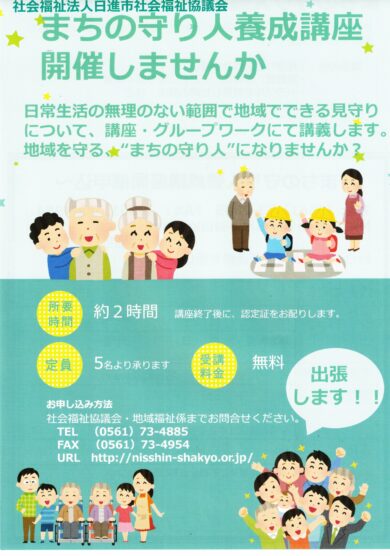 日常生活の無理のない範囲で地域でできる見守りについて、講座·グループワークにて講義します。