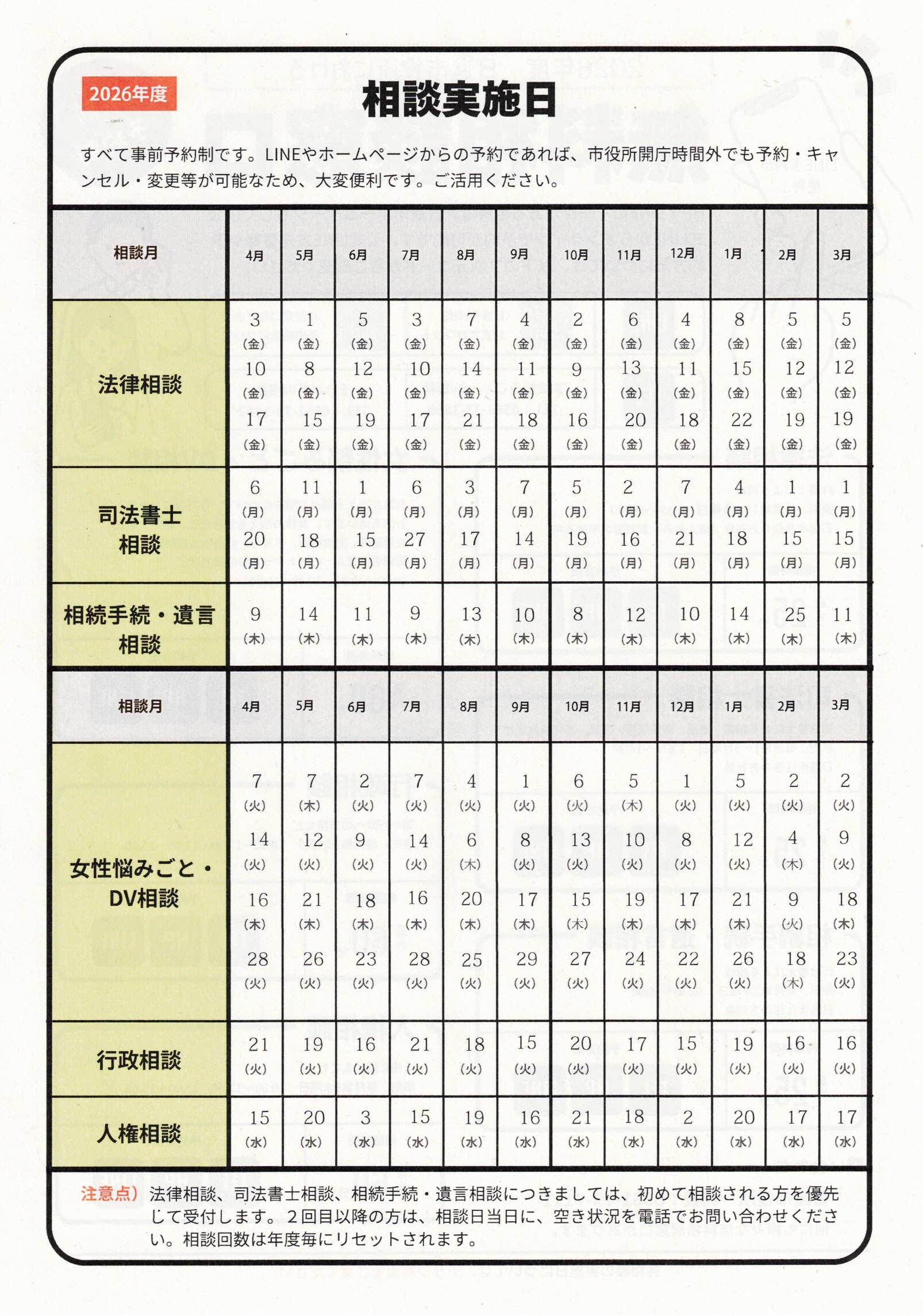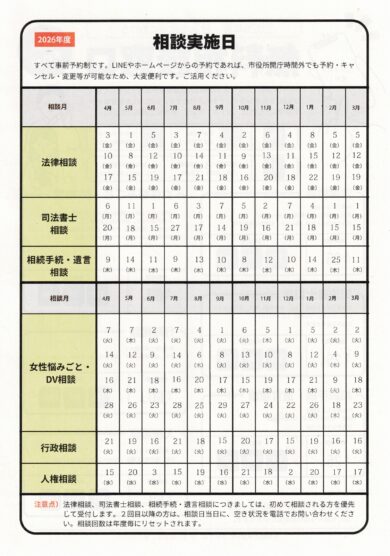 各相談の実施日については、チラシ裏面をご覧ください。