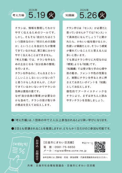 共催:日進市社会福祉協議会・日進市にぎわい交流館