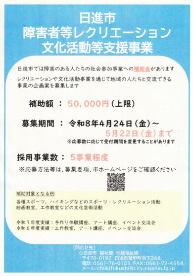 日進市 障害者等レクリエーション 文化活動等支援事業