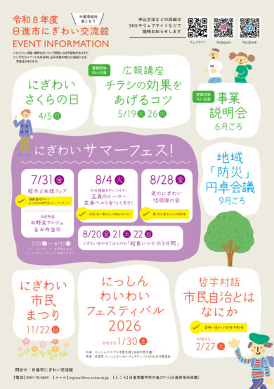 各イベントの詳細や申込受付情報は、随時にぎわい交流館のSNSなどでお知らせします。