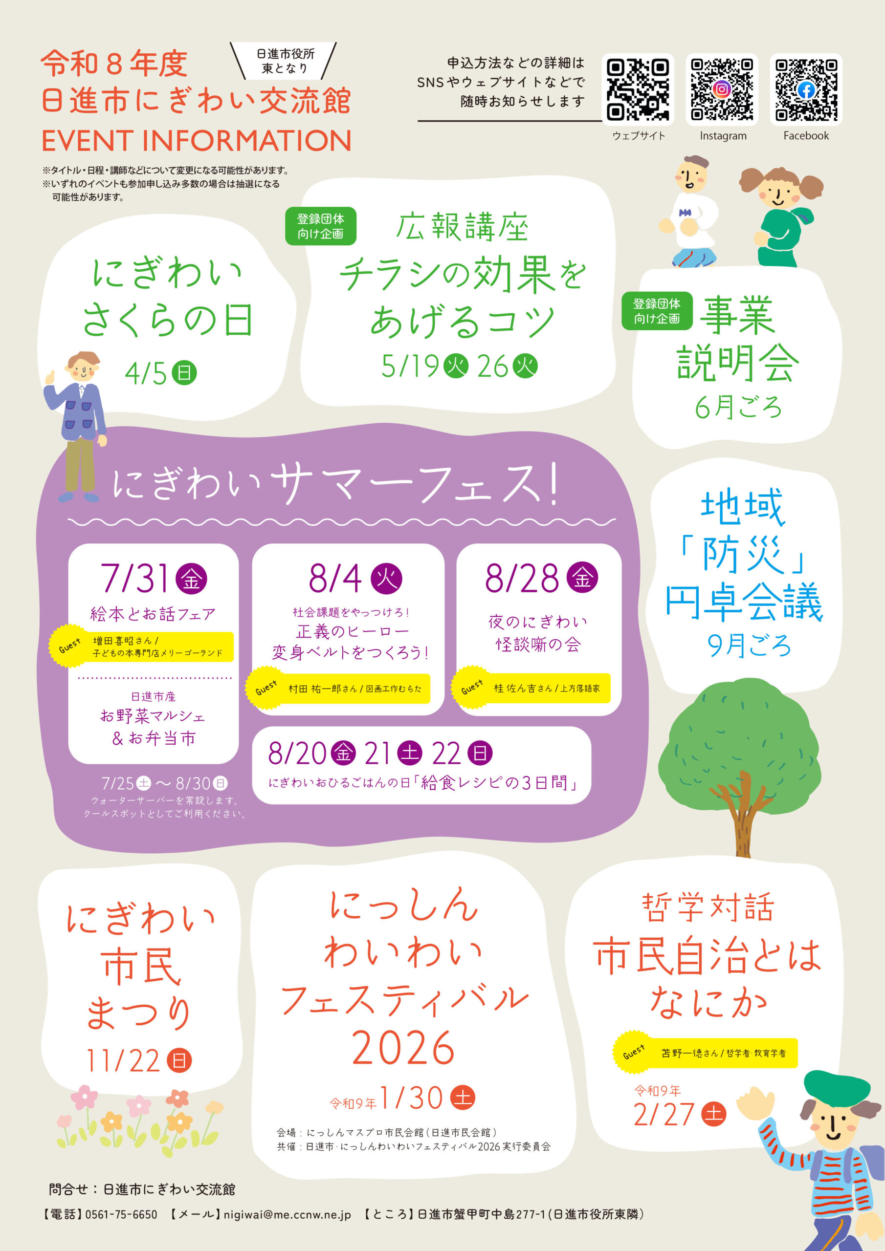各イベントの詳細や申込受付情報は、随時にぎわい交流館のSNSなどでお知らせします。
