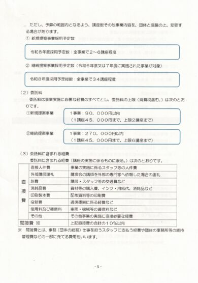 団体は、各事業における講座の企画、 準備、周知、 講座の運営 (受付を含む。)、