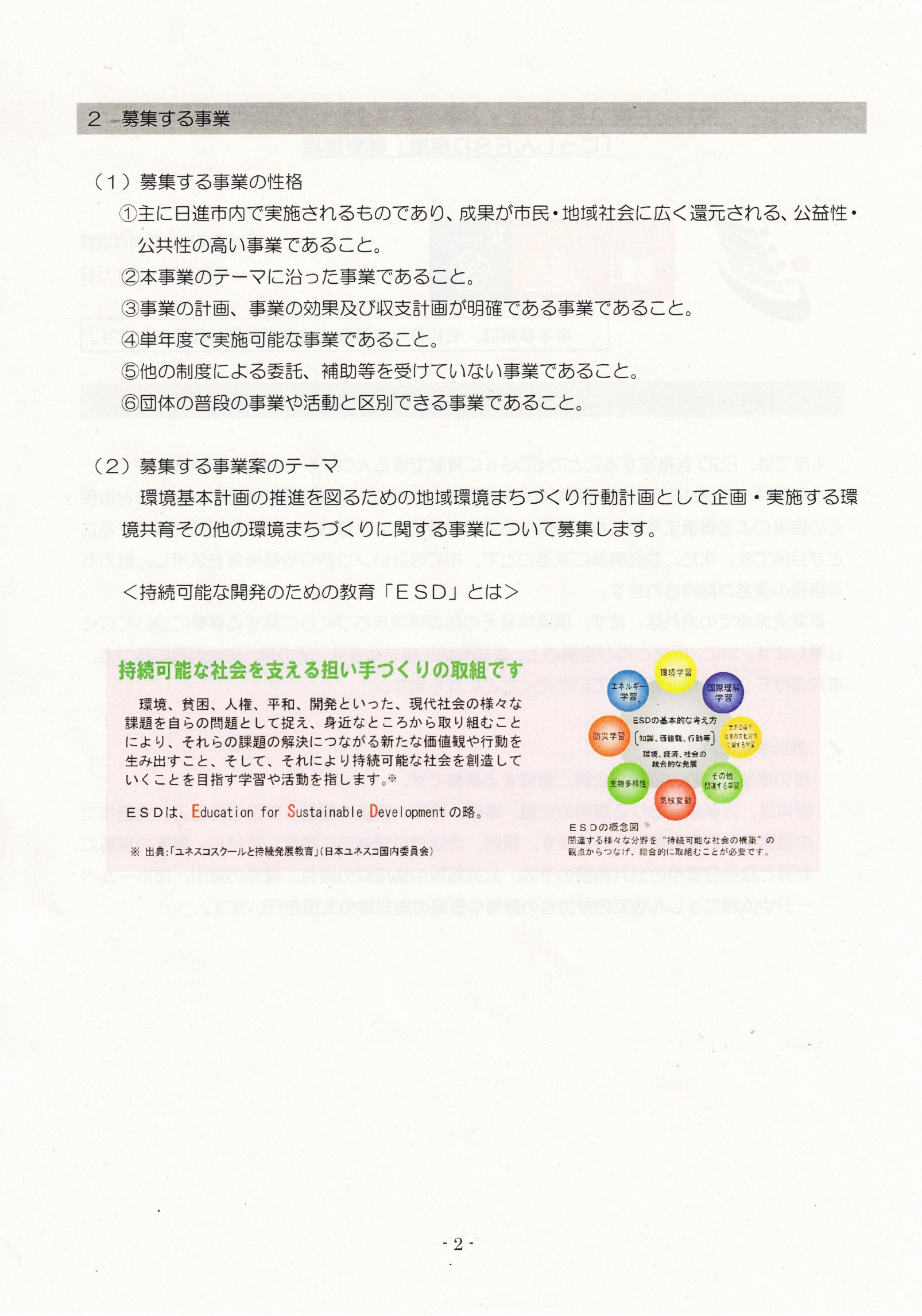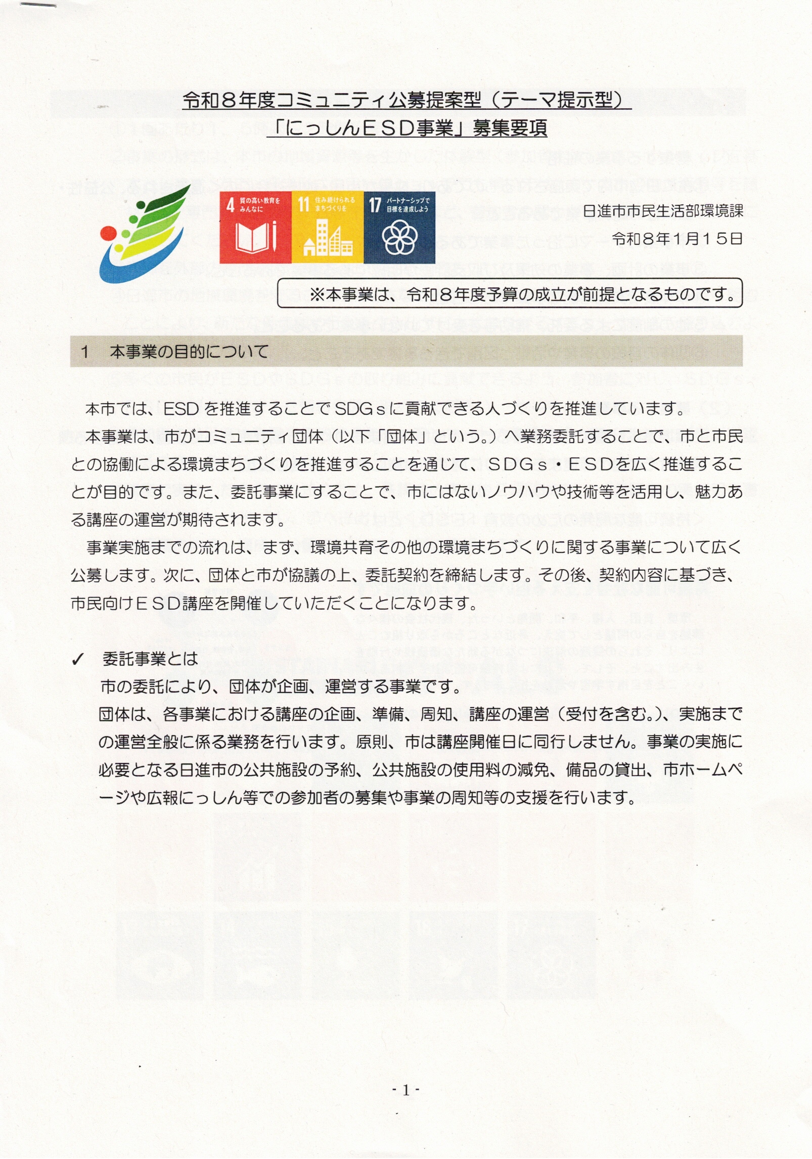 令和8年度コミュニティ公募提案型(テーマ提示型)「にっしんESD事業」募集