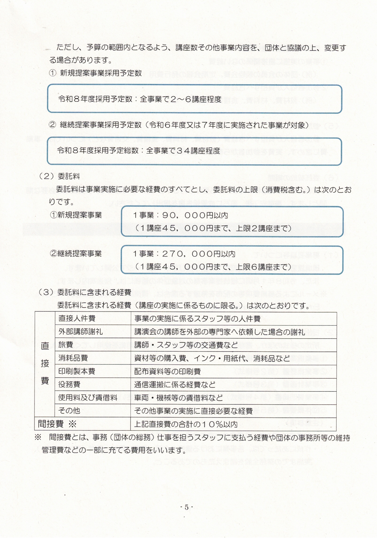 団体は、各事業における講座の企画、 準備、周知、 講座の運営 (受付を含む。)、