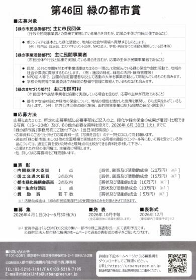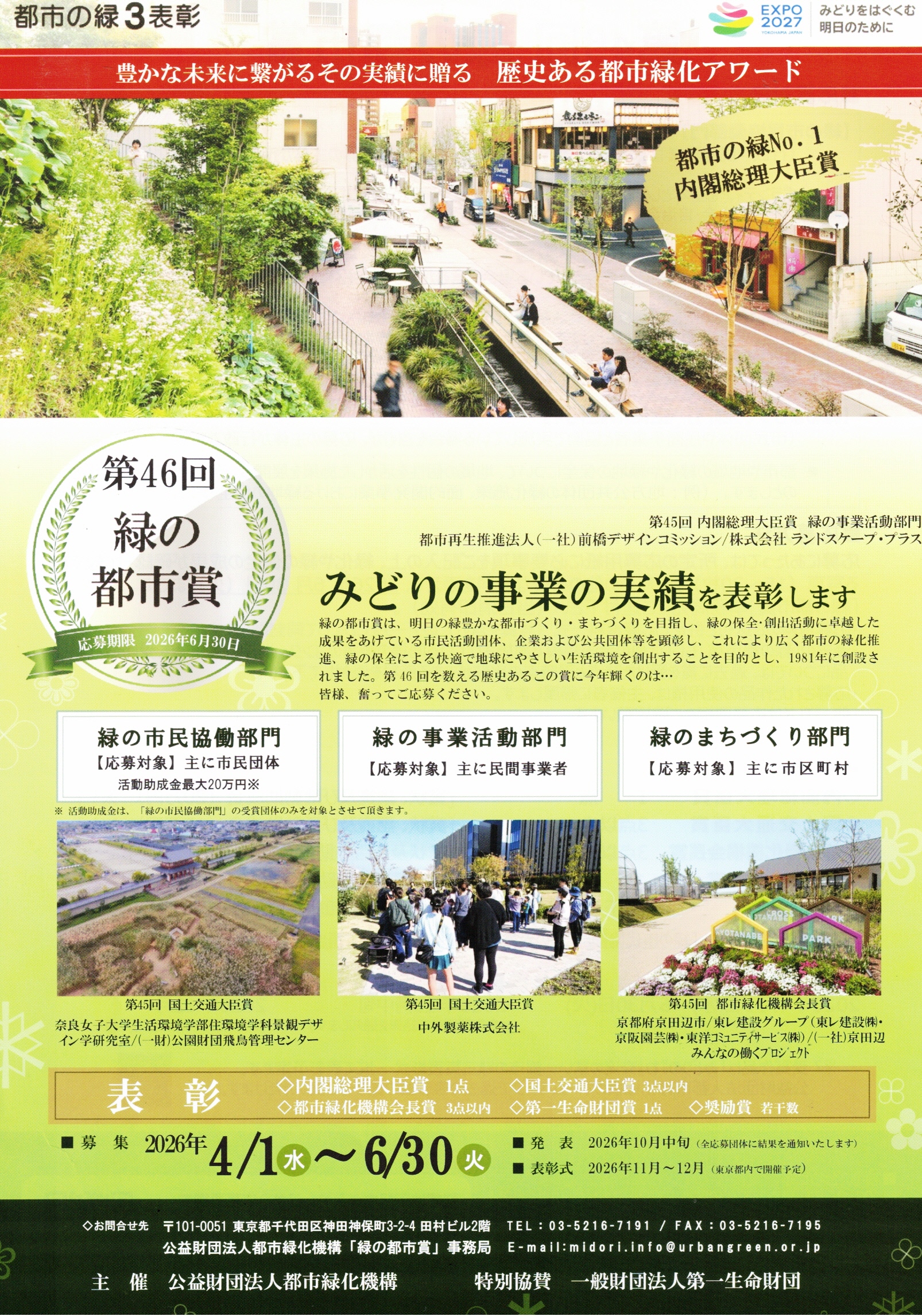 第46回 緑の都市賞 みどりの事業の実績を表彰します